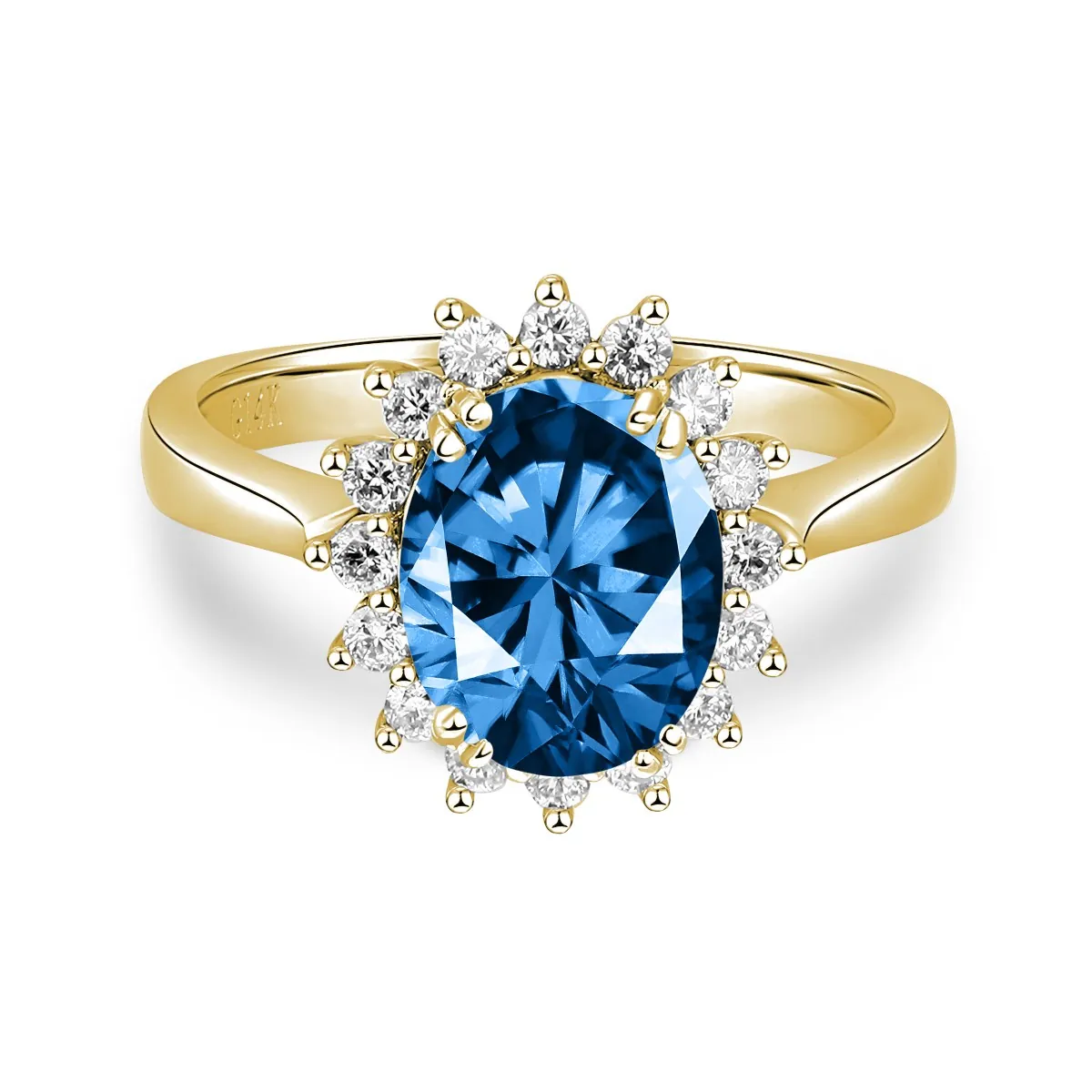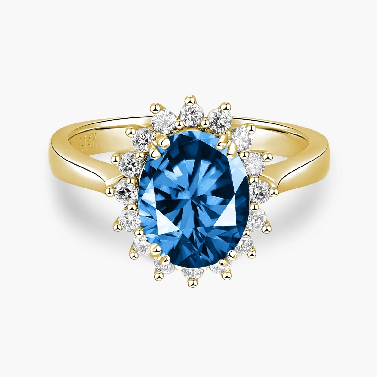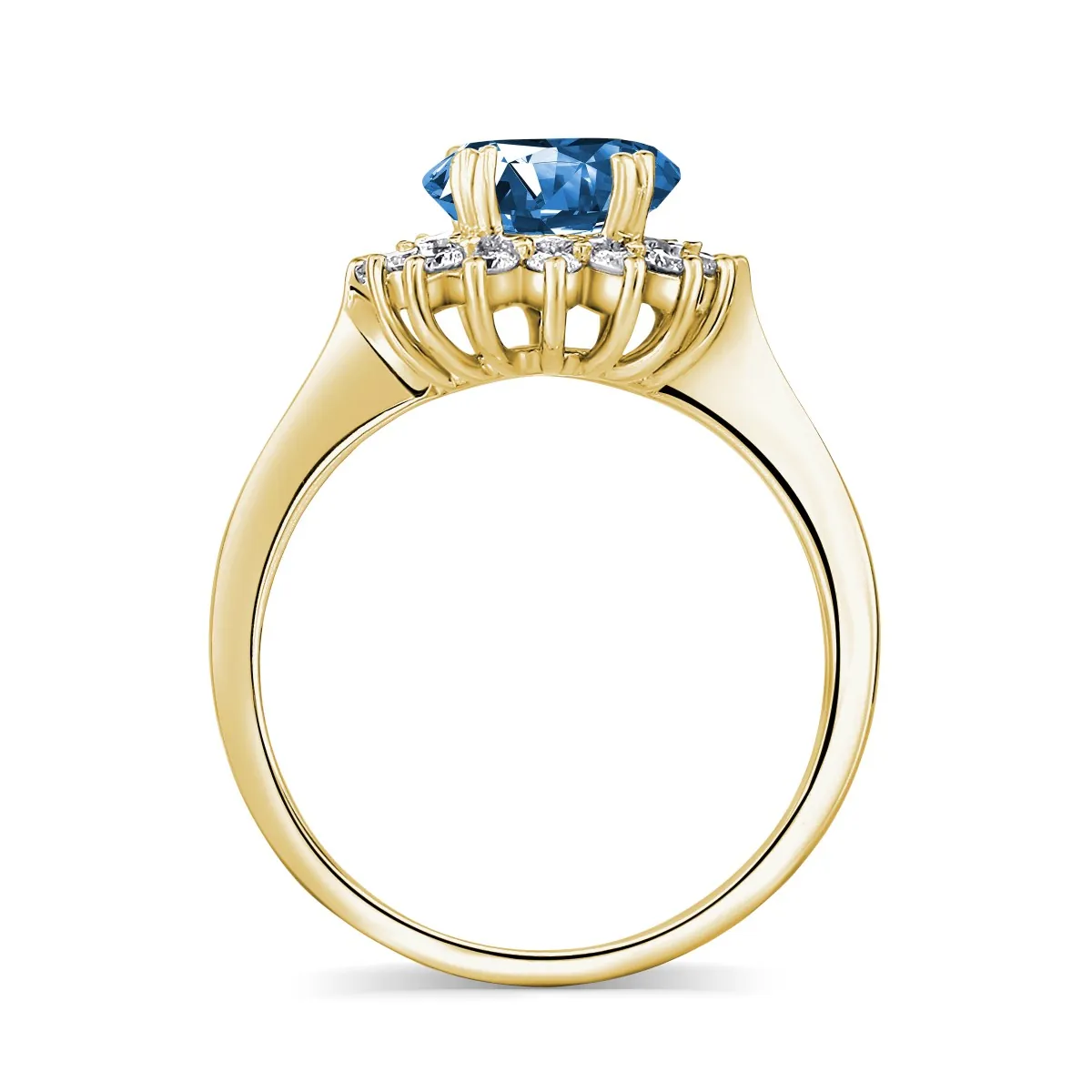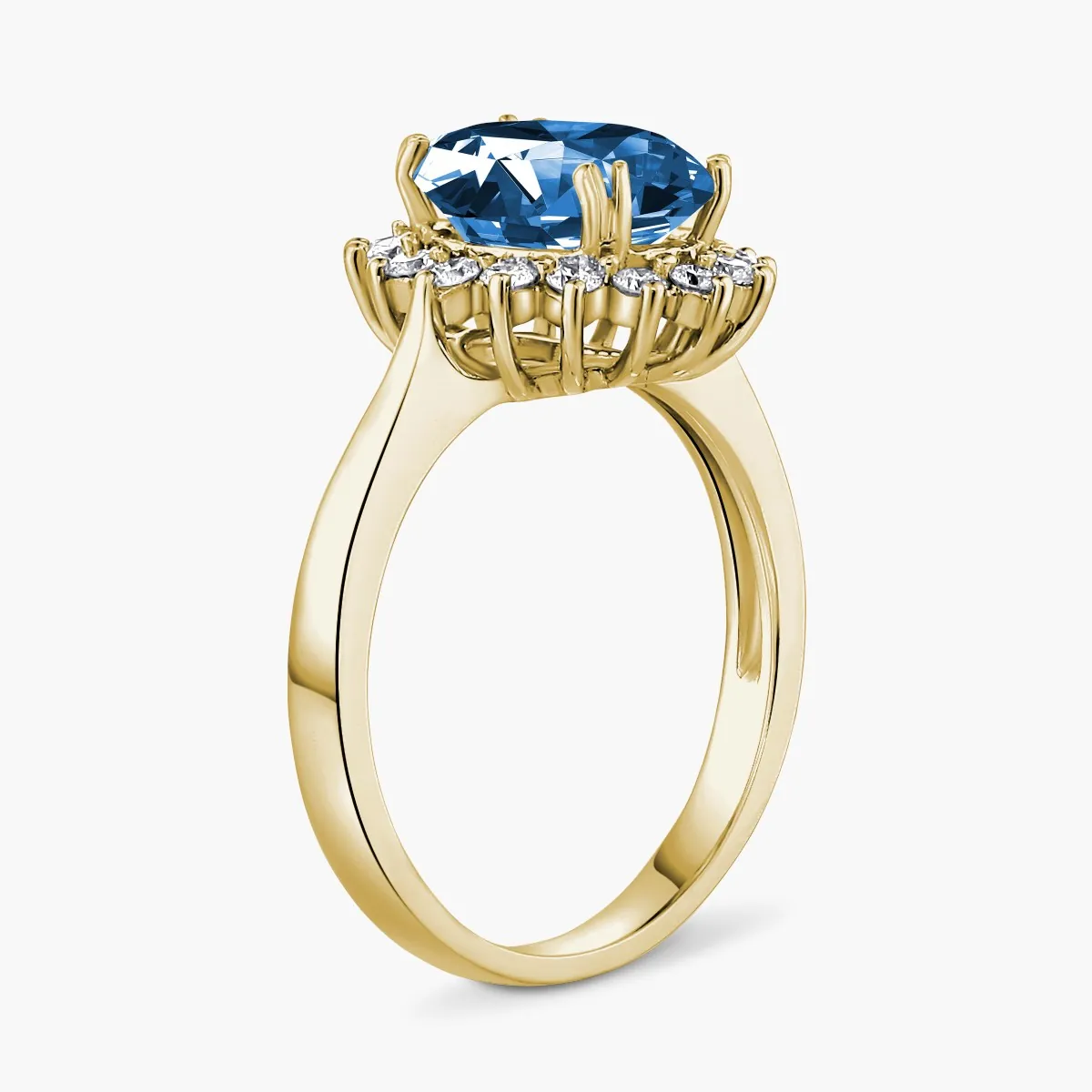 Oro amarillo con Topacio azul y Diamantes naturales