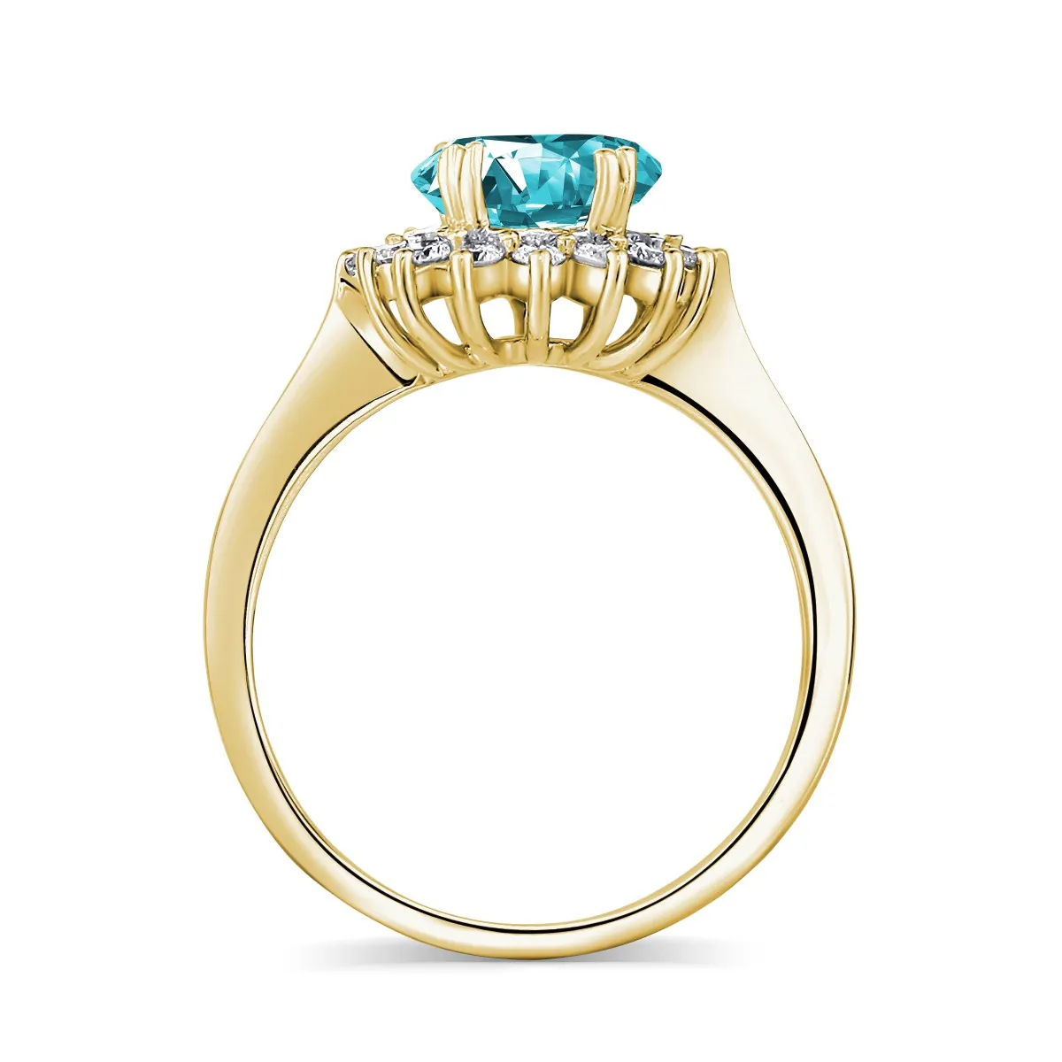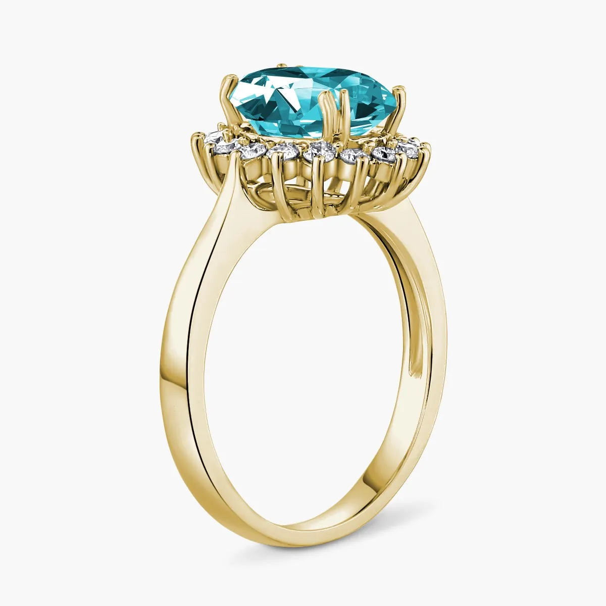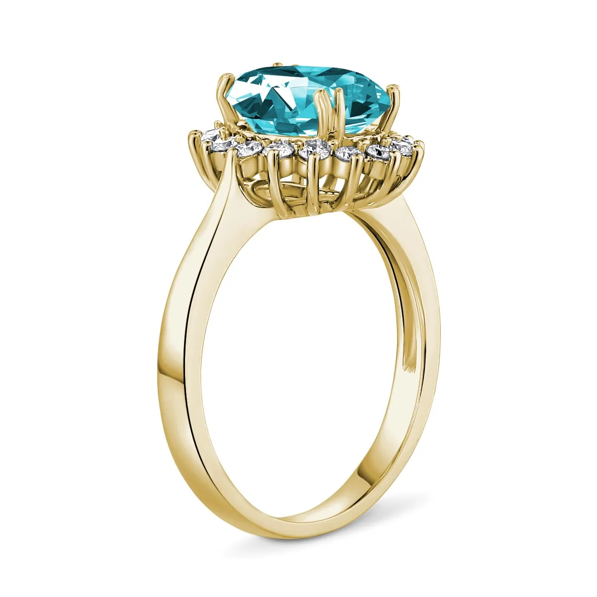 Oro amarillo con Topacio celeste y Diamantes naturales