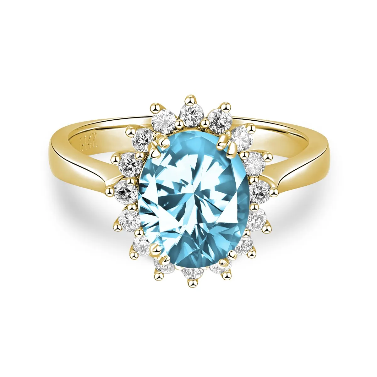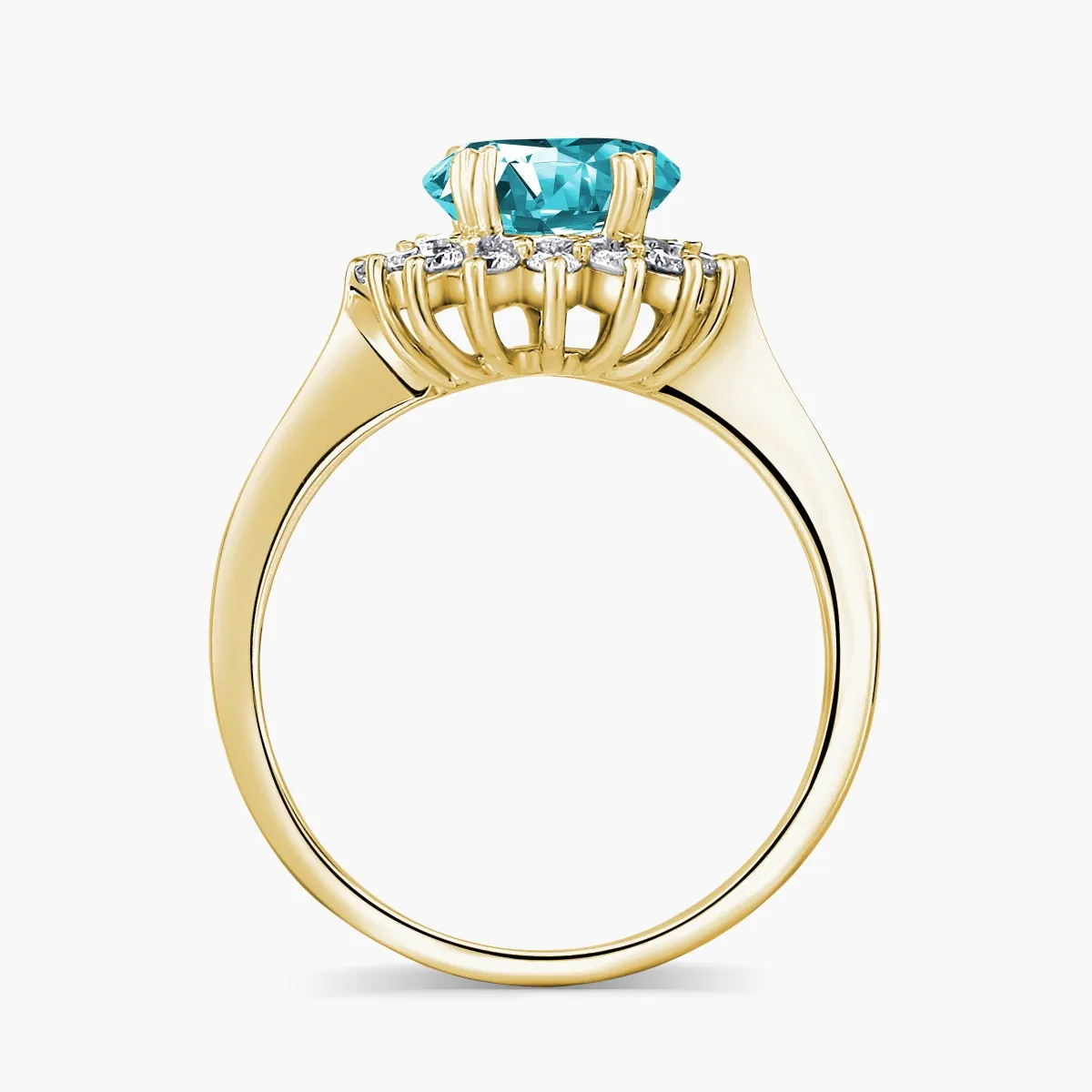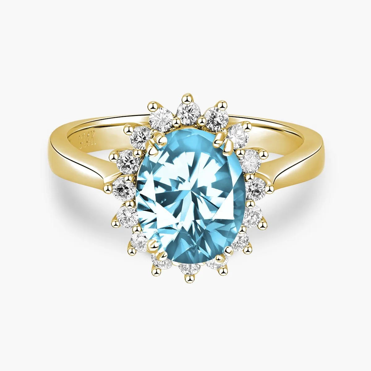 Oro amarillo con Topacio celeste y Diamantes naturales