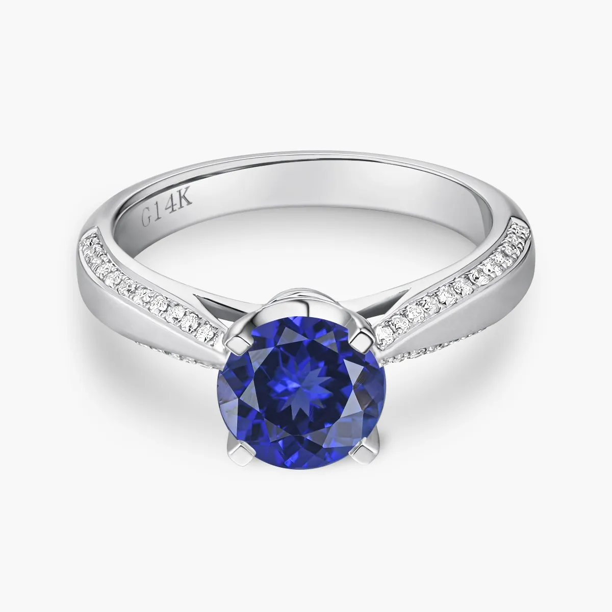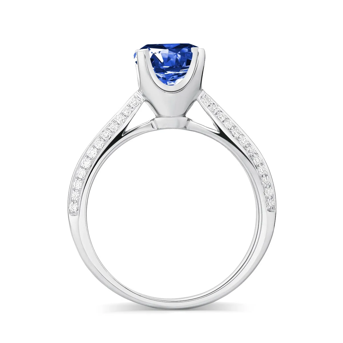 Oro blanco con Zafiro azul y Diamantes naturales