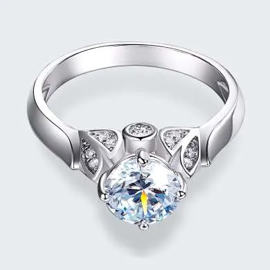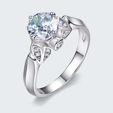 Sortija en plata ley 925 con detalles en la piedra central estilo pétalos de una flor que sujetan al zircón calidad AAA corte redondo color natural