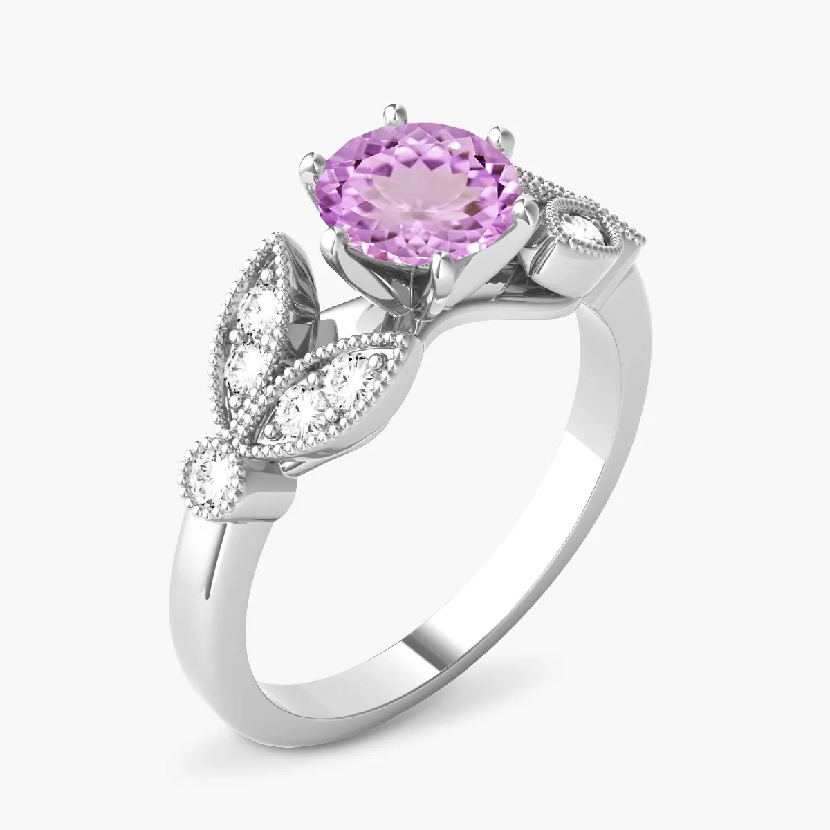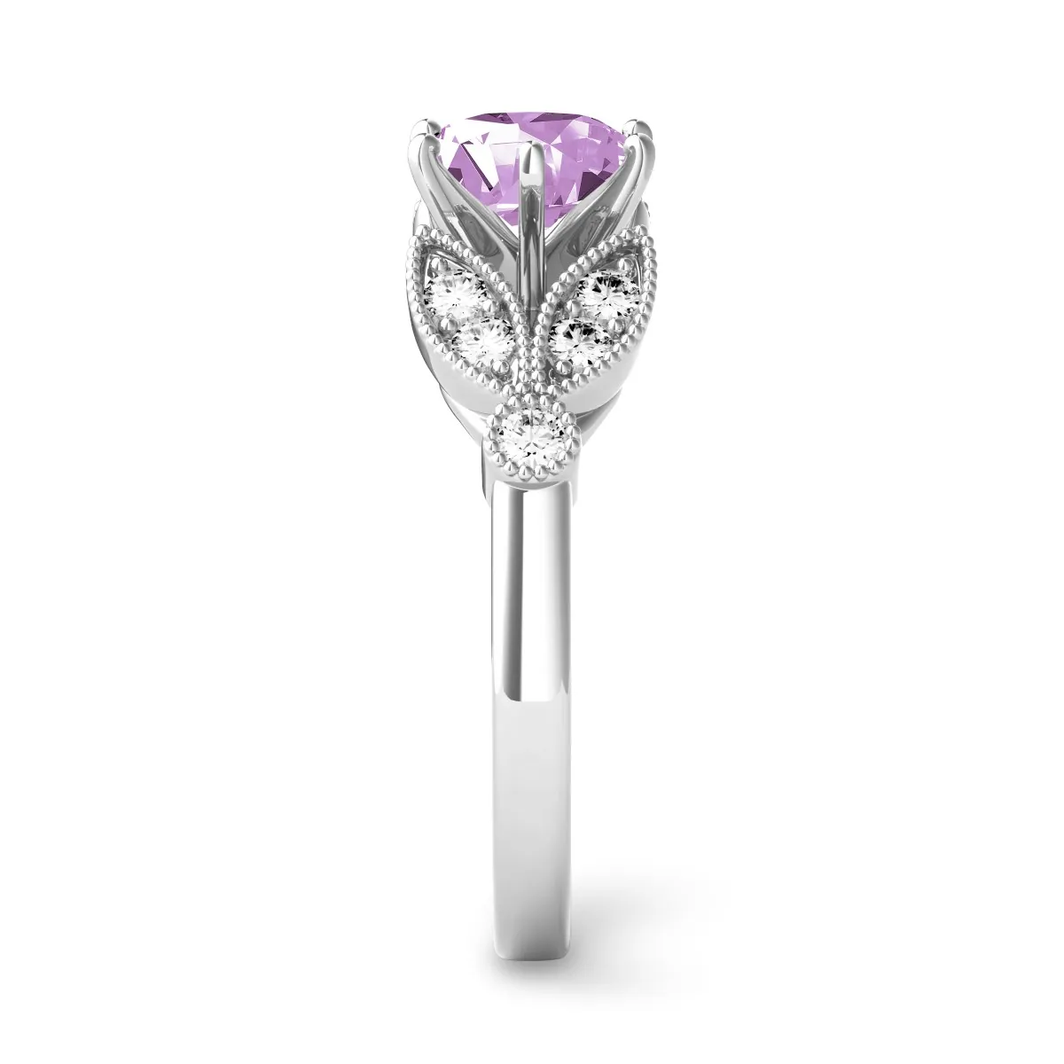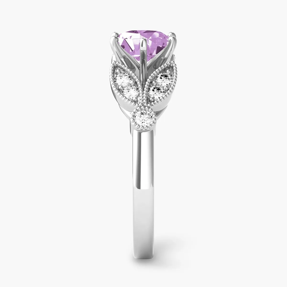Oro blanco con Zafiro rosa y Diamantes naturales
