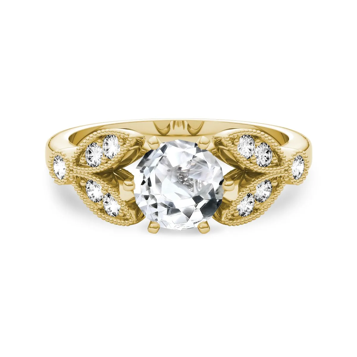 Oro amarillo con Topacio blanco y Diamantes naturales