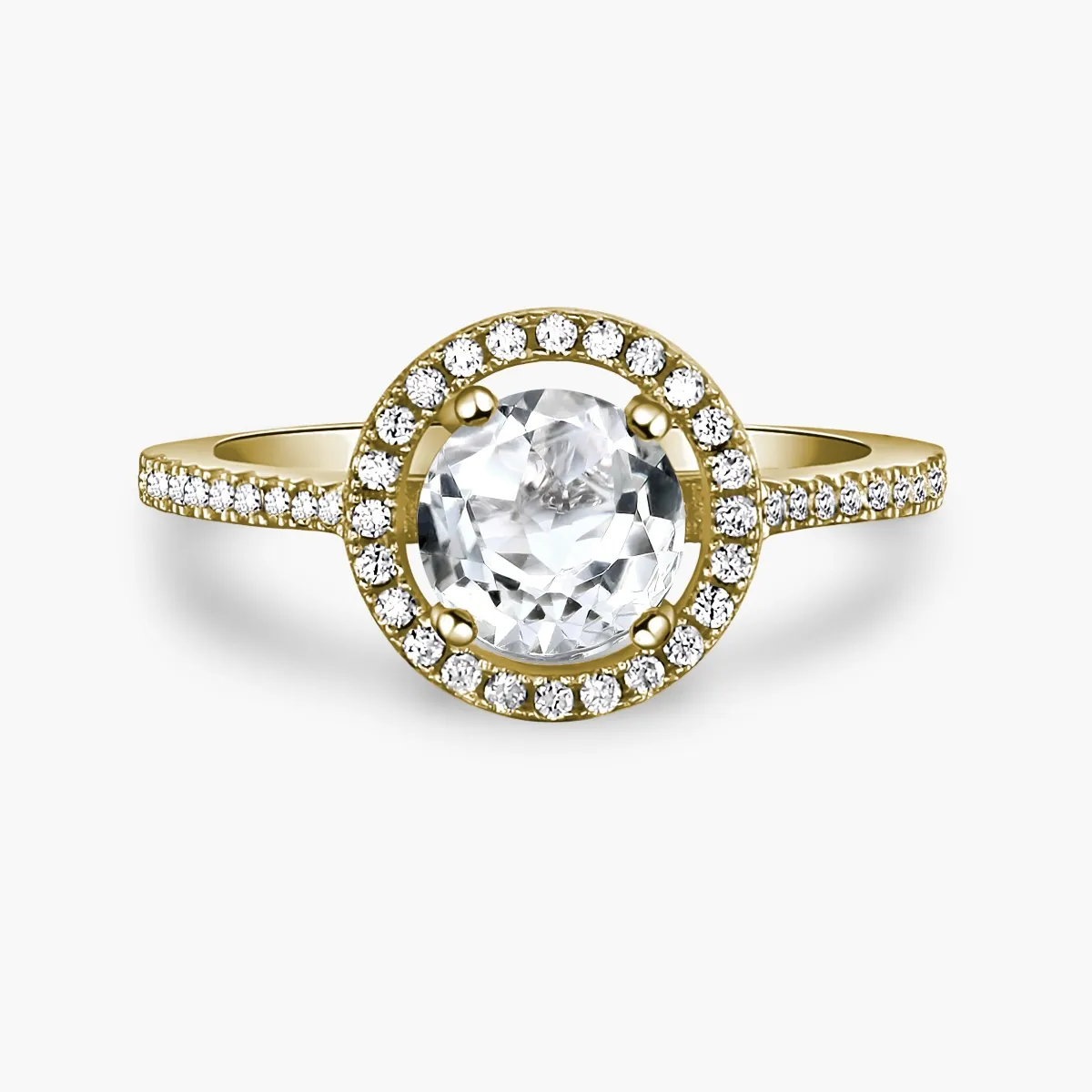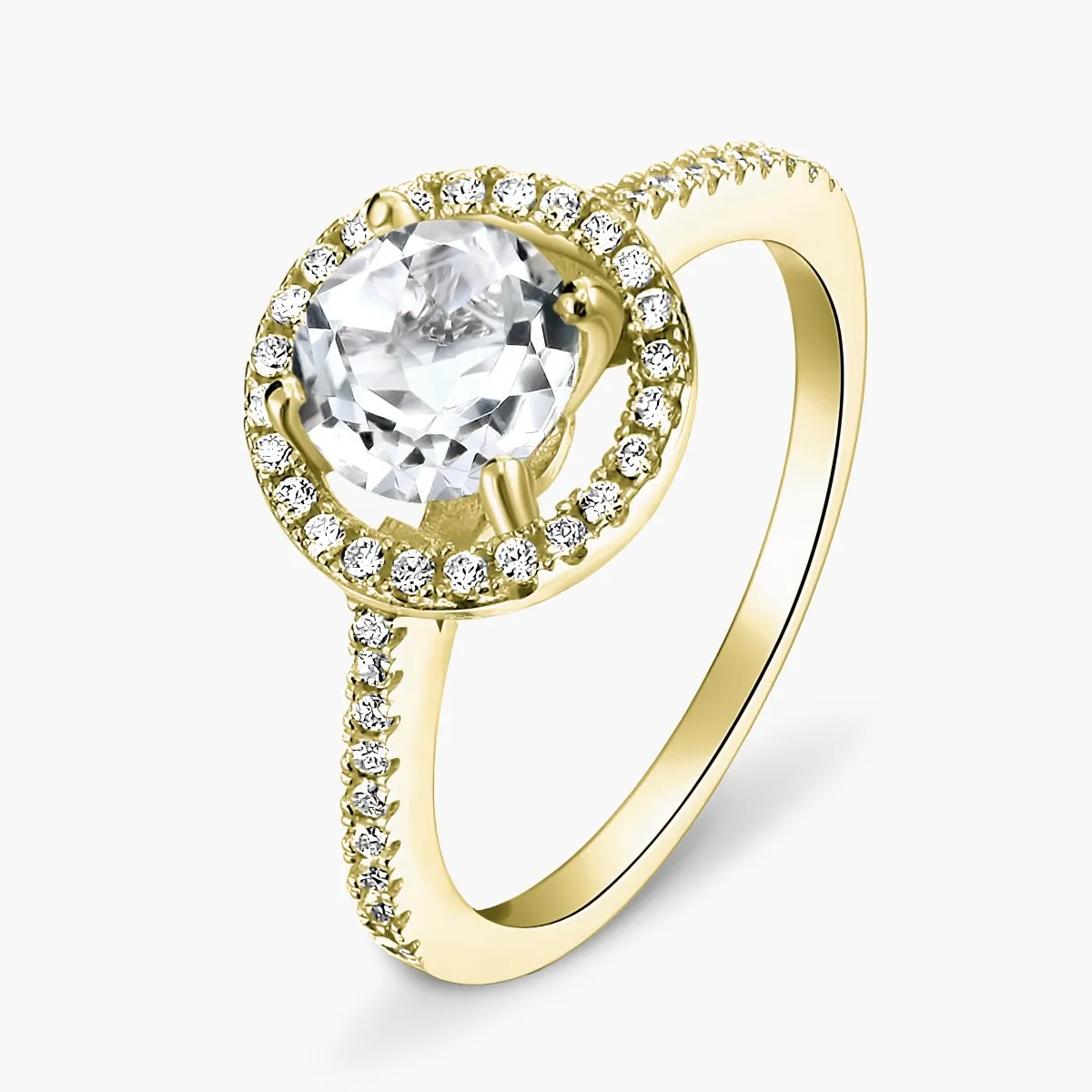Oro amarillo con Topacio blanco y Diamantes naturales