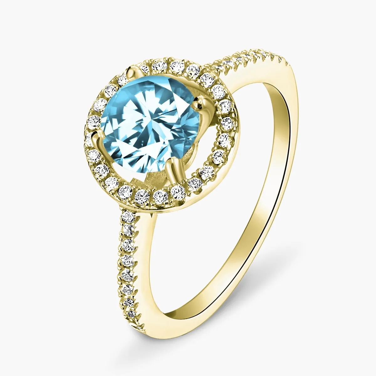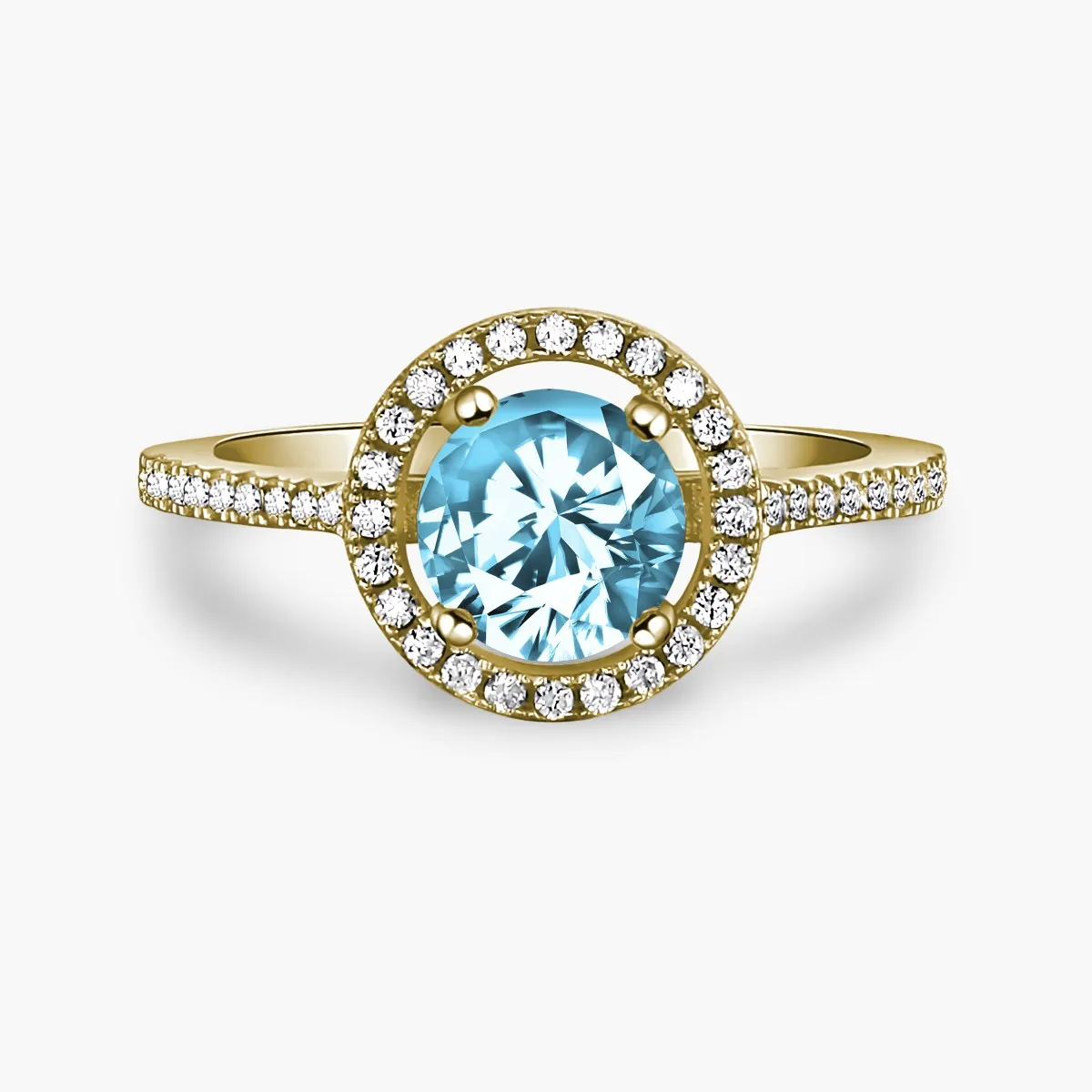 Oro amarillo con Topacio celeste y Diamantes naturales
