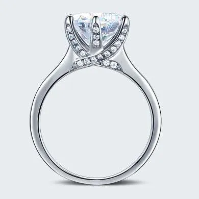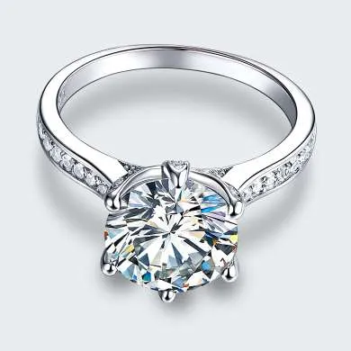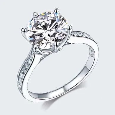 Sortija de compromiso en plata ley 925, lleva pequeñas incrustaciones en el aro que sujeta a un zircón calidad AAA corte redondo color natural