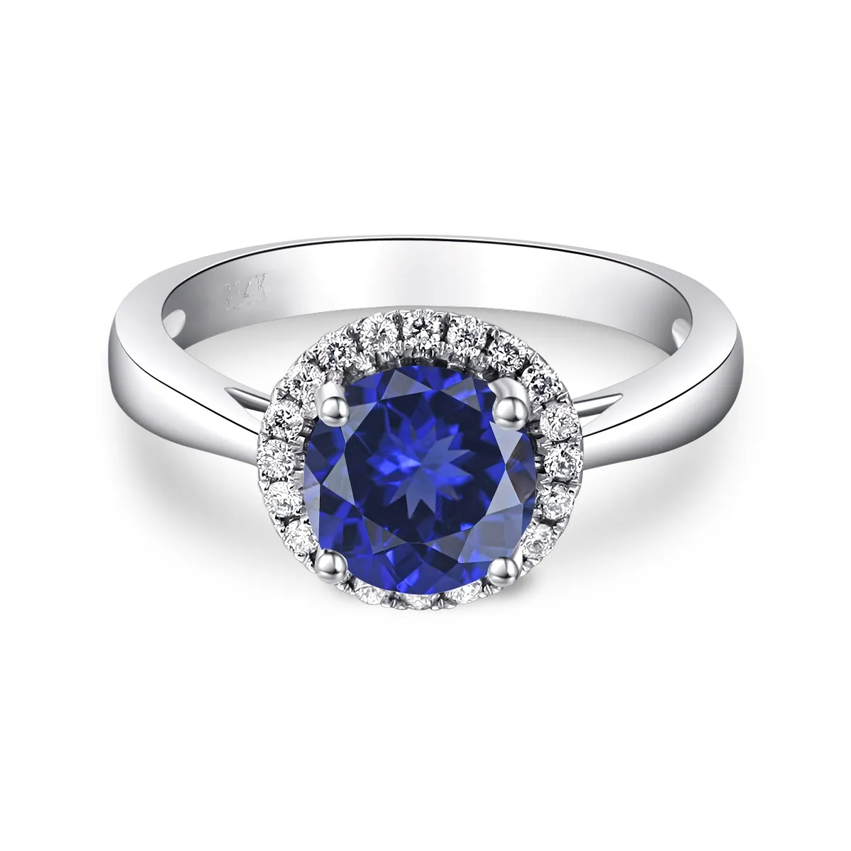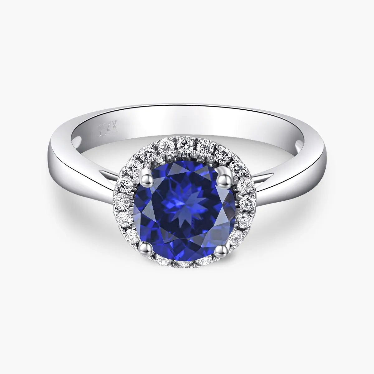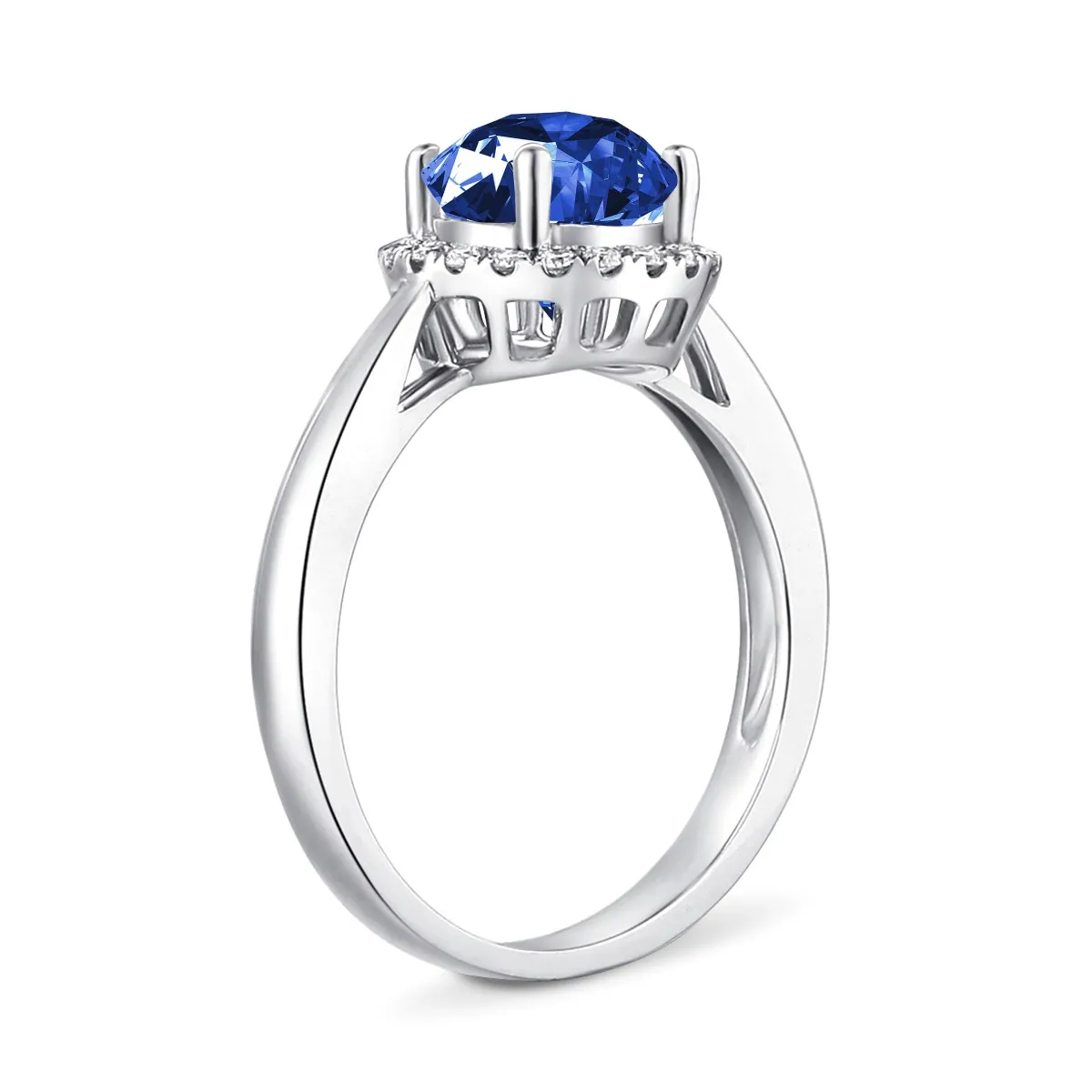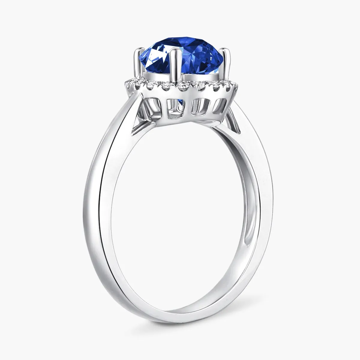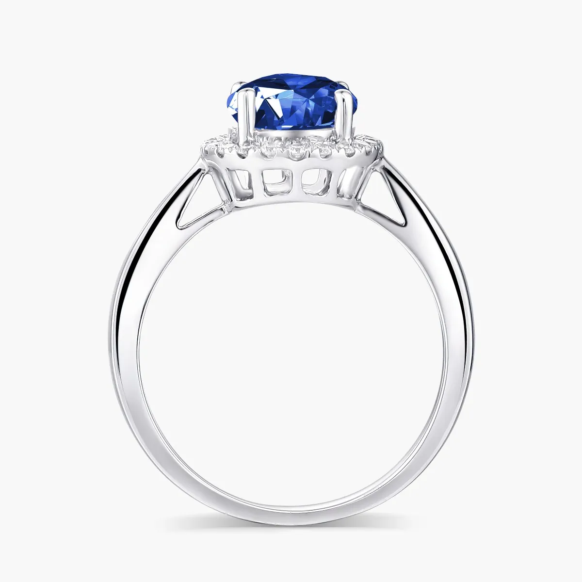 Oro blanco con Zafiro azul y Diamantes naturales
