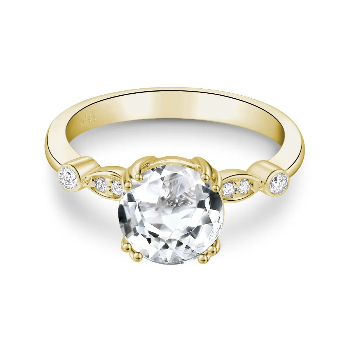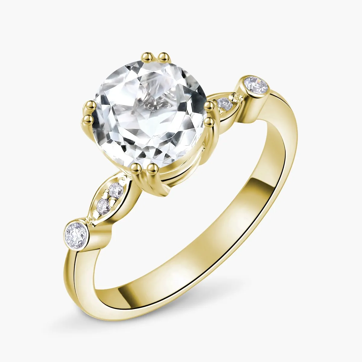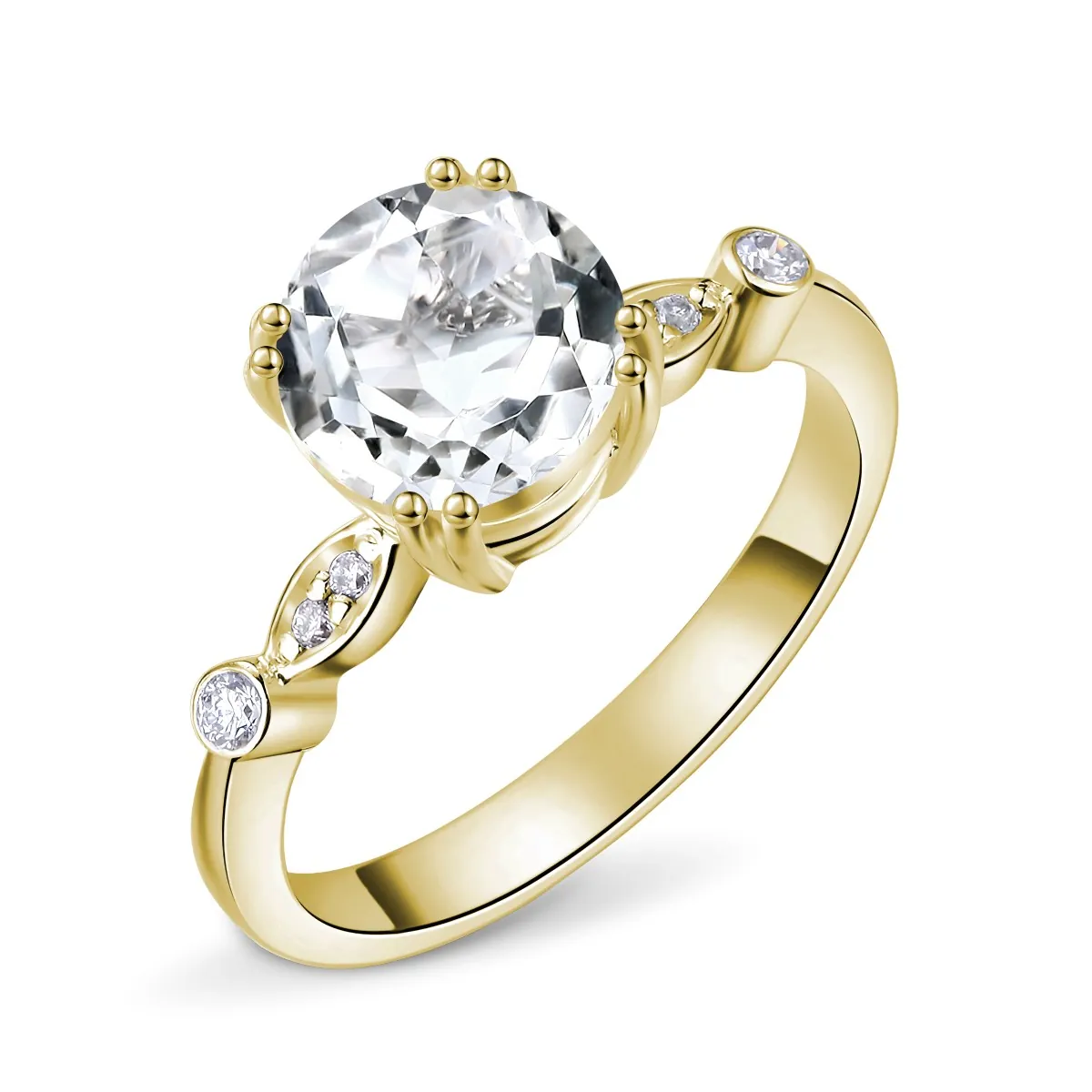 Oro amarillo con Topacio blanco y Diamantes naturales