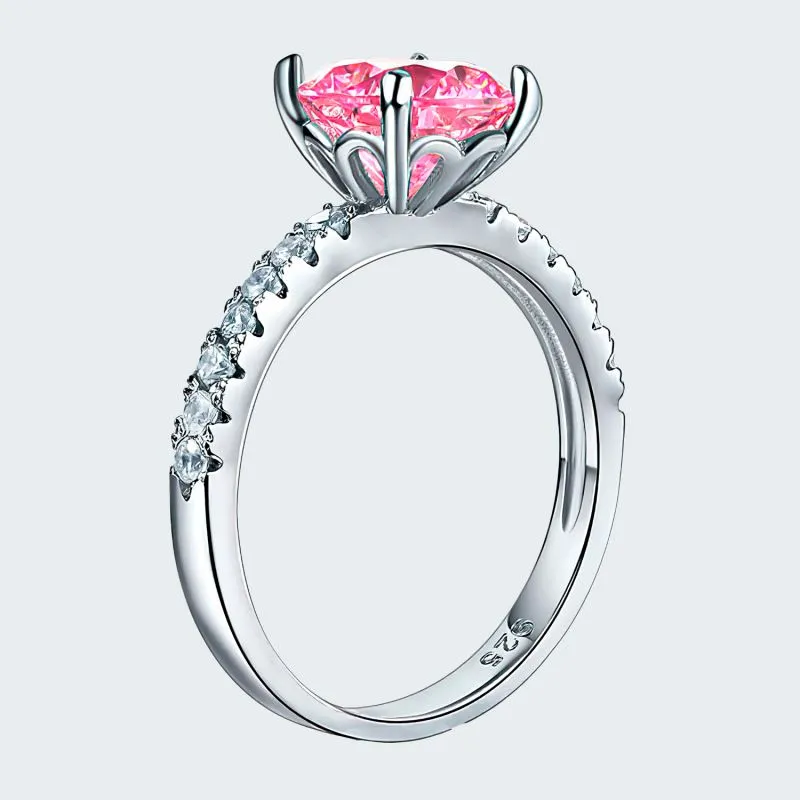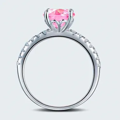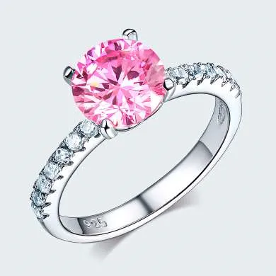 Plata ley 925 con zircon swarovski calidad AAA, lleva pequeñas incrustaciones en el aro y una piedra central corte redondo color rosa