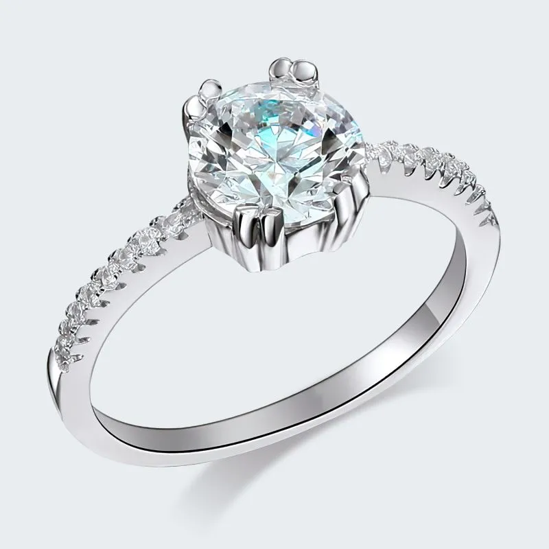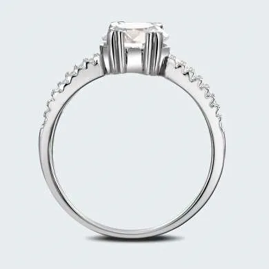 Sortija en plata ley 925 con zircón Swarovski AAA corte redondo, además incrustaciones de zircón en el aro