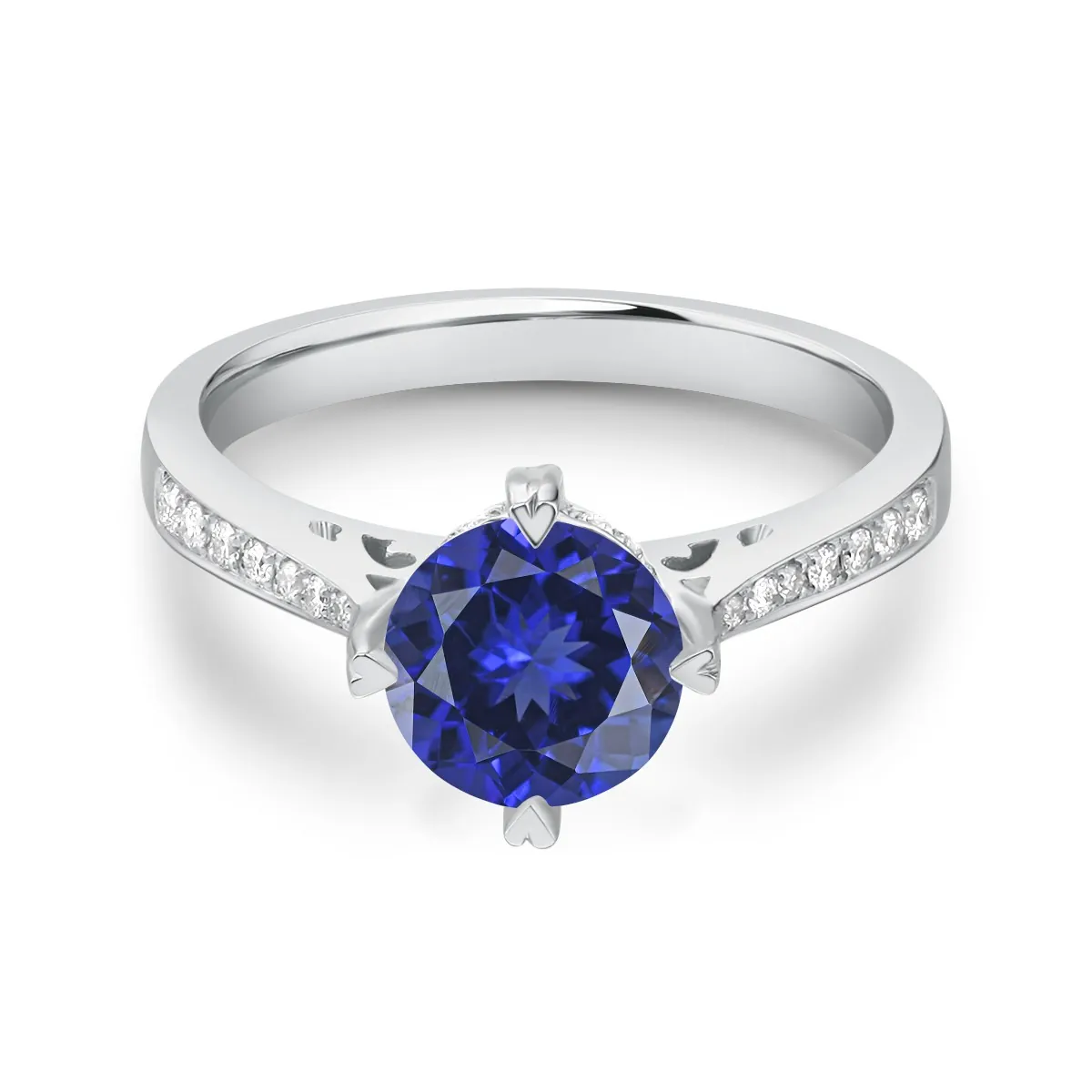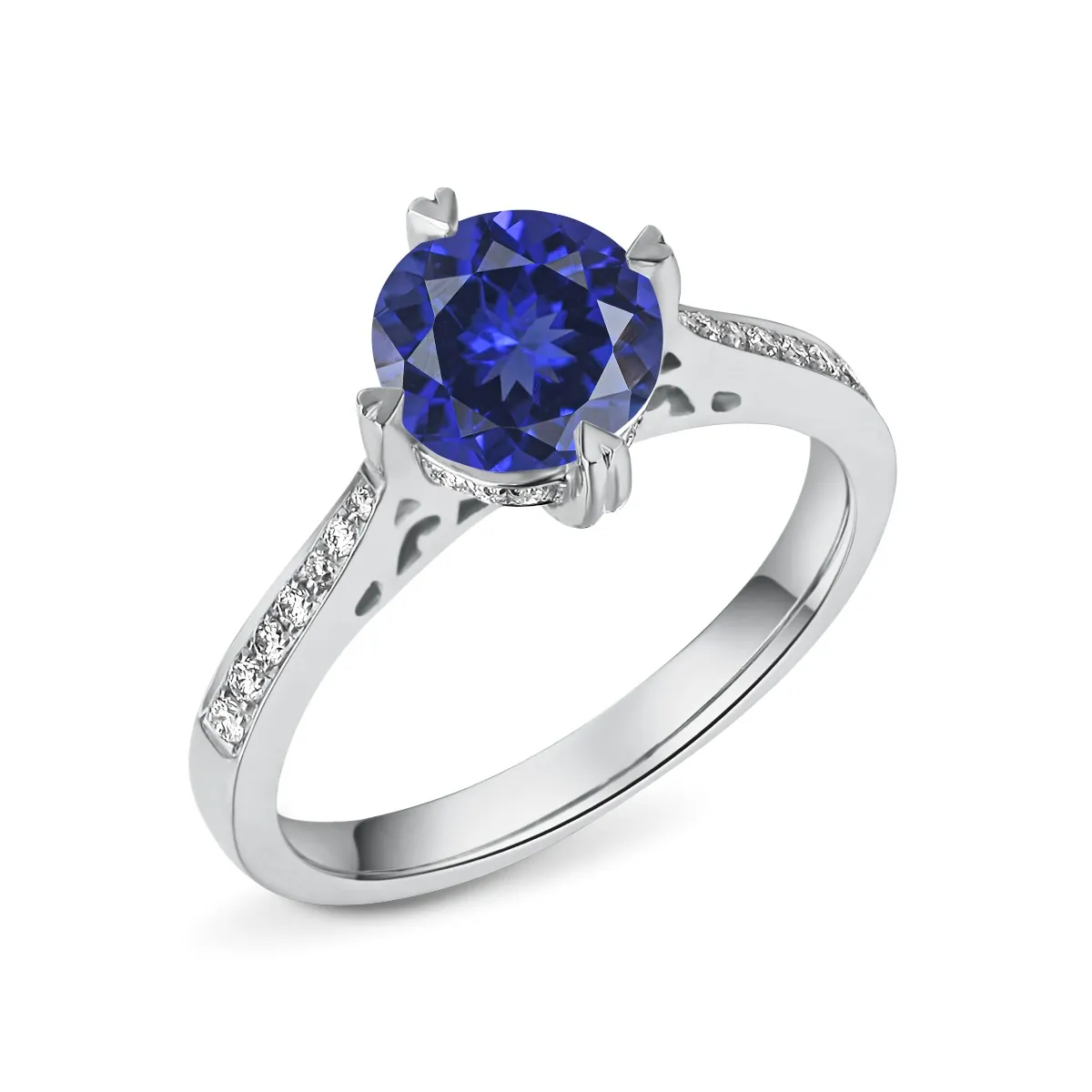 Oro blanco con Zafiro azul y Diamantes naturales
