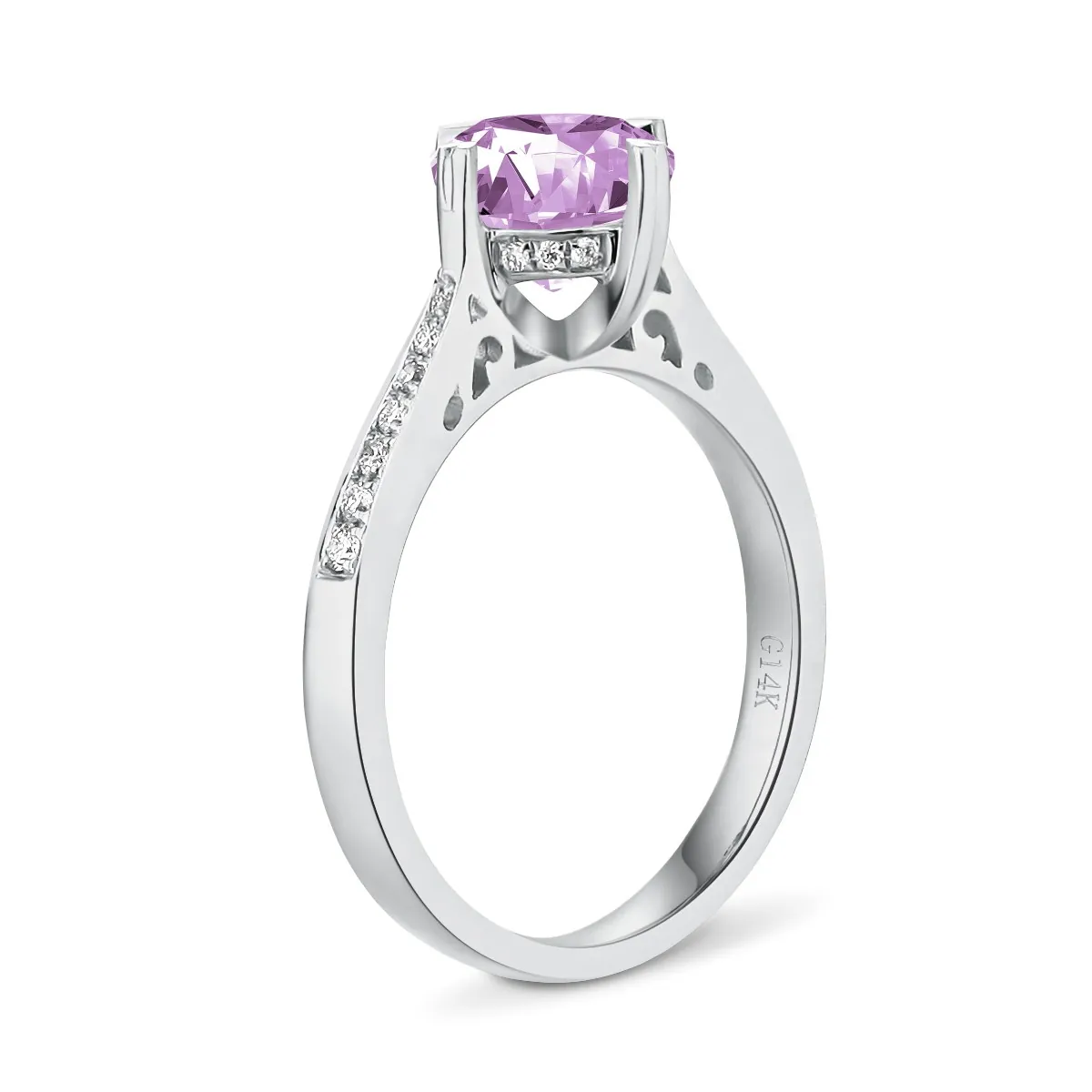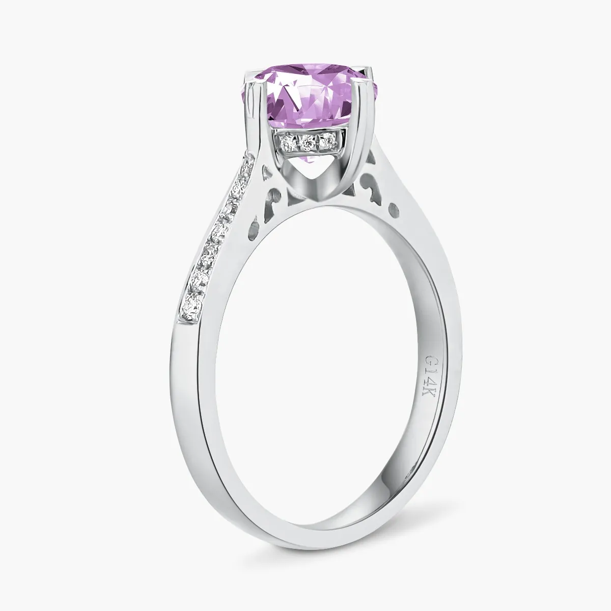 Oro blanco con Zafiro rosa y Diamantes naturales
