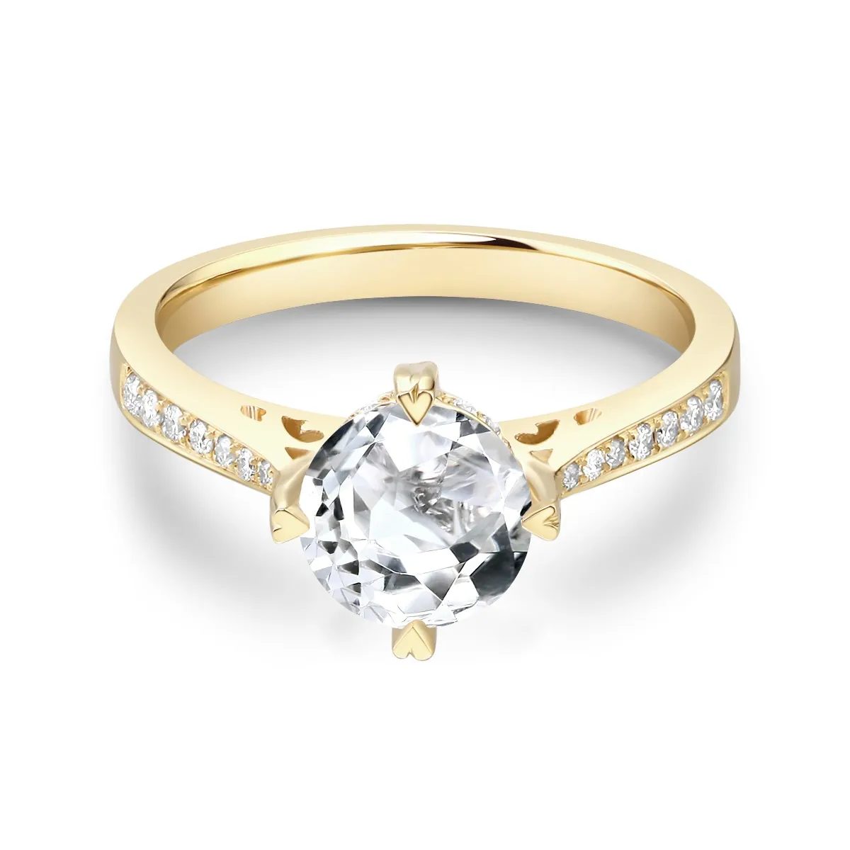 Oro amarillo con Topacio blanco y Diamantes naturales
