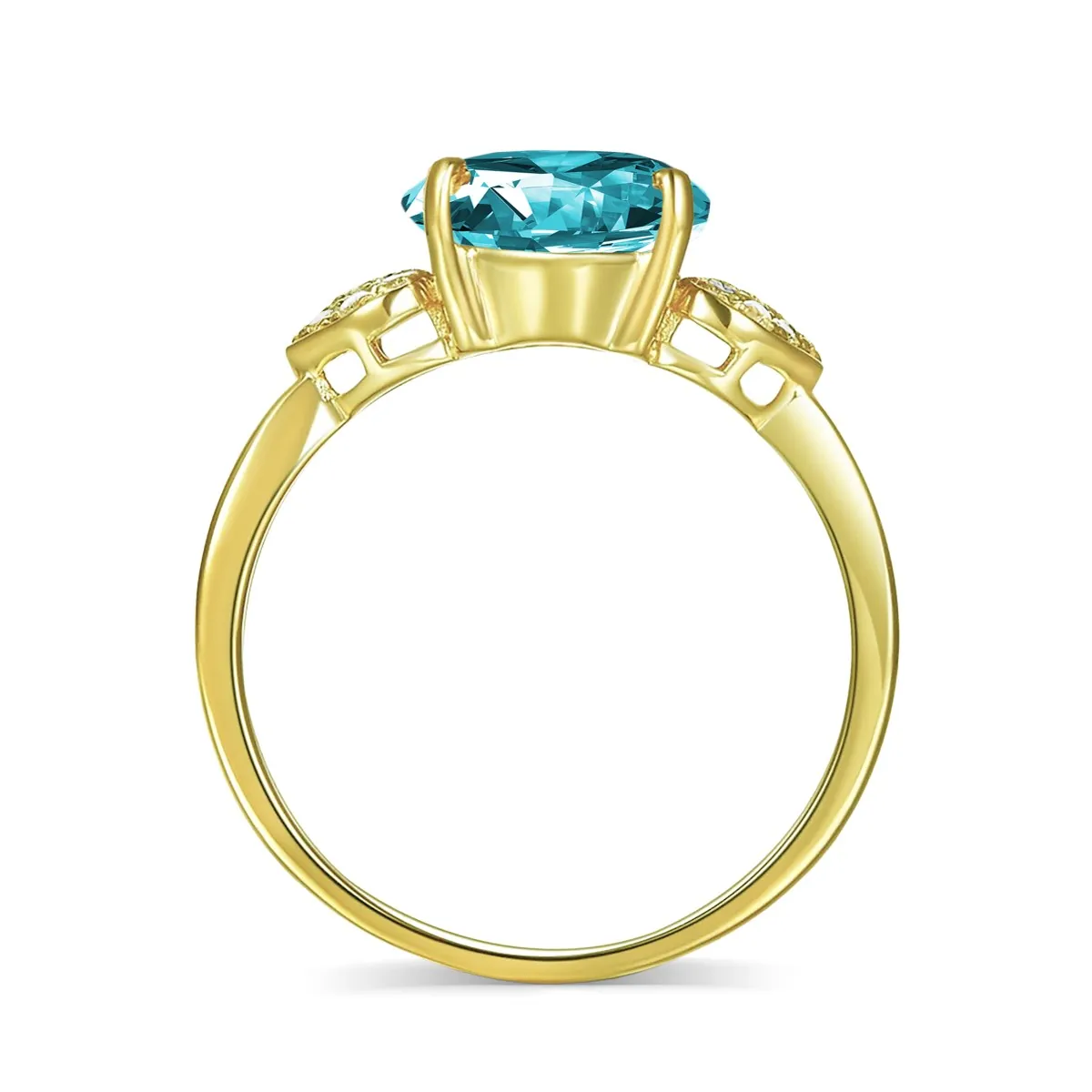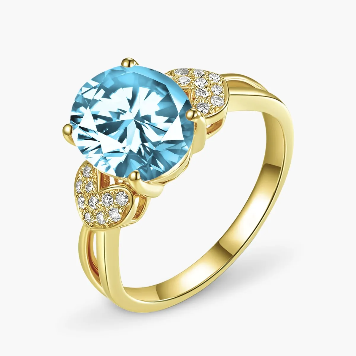 Oro amarillo con Topacio celeste y Diamantes naturales