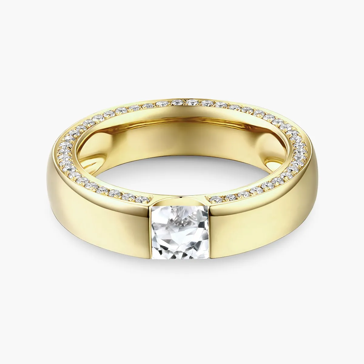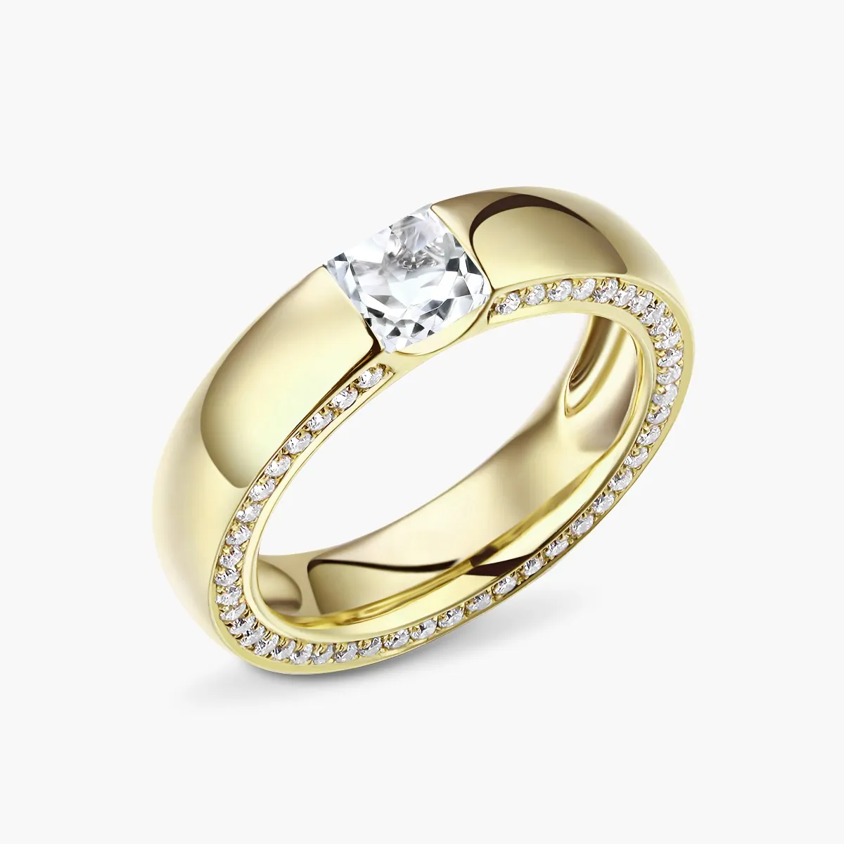 Cada anillo se elabora con oro sólido 100% adquirido directamente de refinerías autorizadas. No utilizamos oro reciclado, porque creemos que la pureza original es la que garantiza la perfección y el valor eterno de cada pieza. Sin centros huecos, sin chapados: solo oro sólido y auténtico.