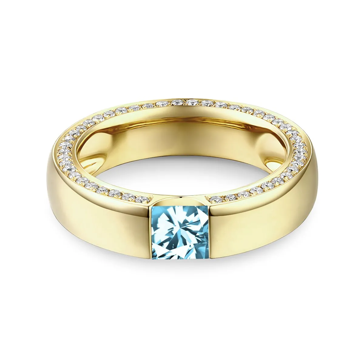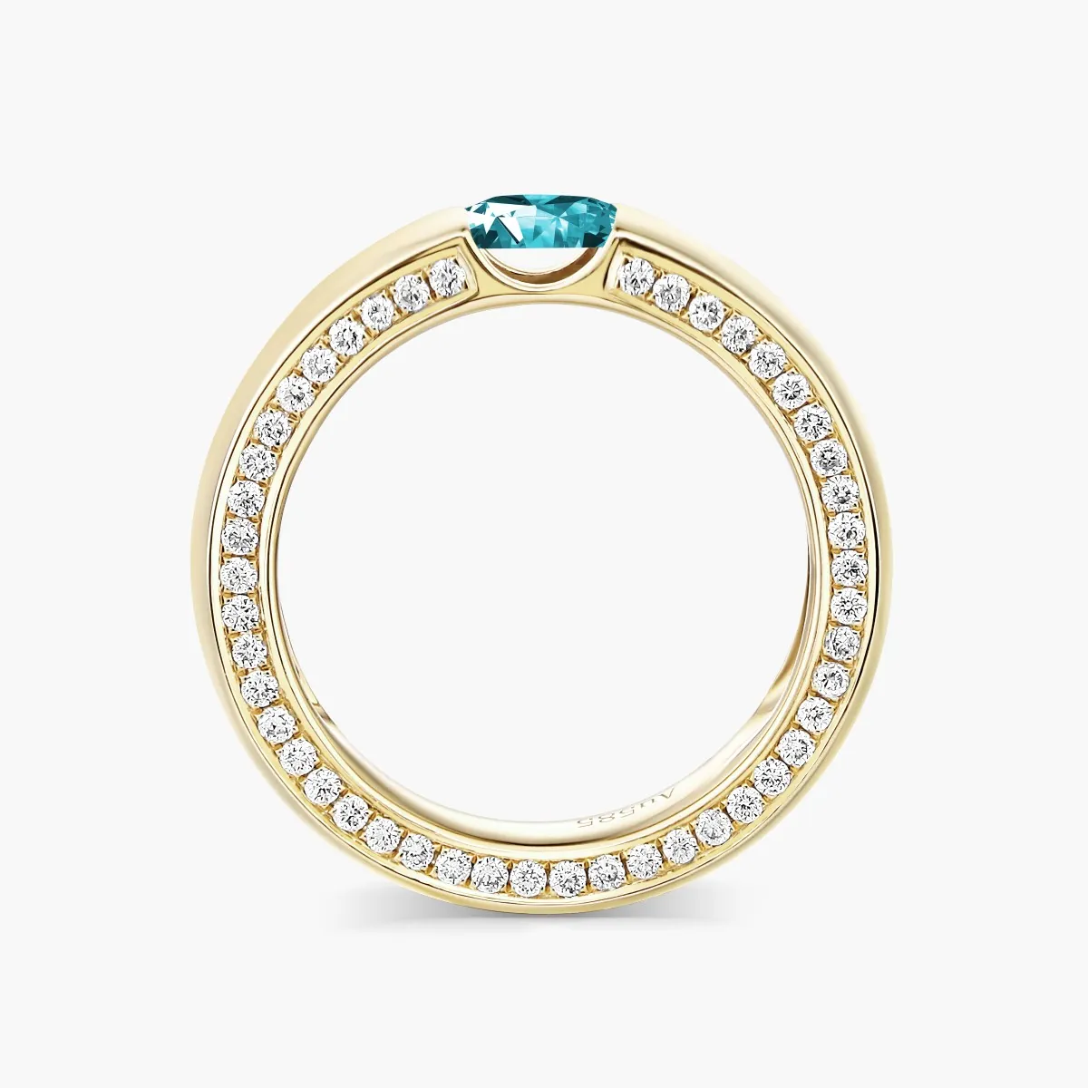 Oro amarillo con Topacio celeste y Diamantes naturales