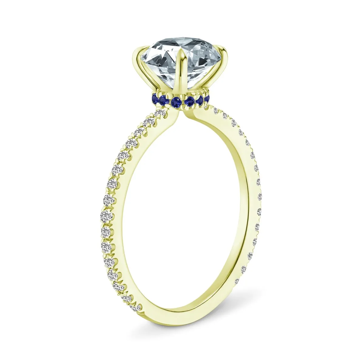 Oro amarillo con Topacio blanco, Diamantes naturales y Zafiros azules