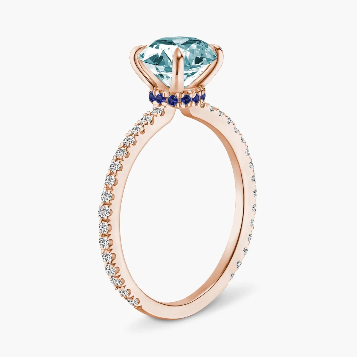 Oro rosa con Aguamarina, Diamantes naturales y Zafiros azules