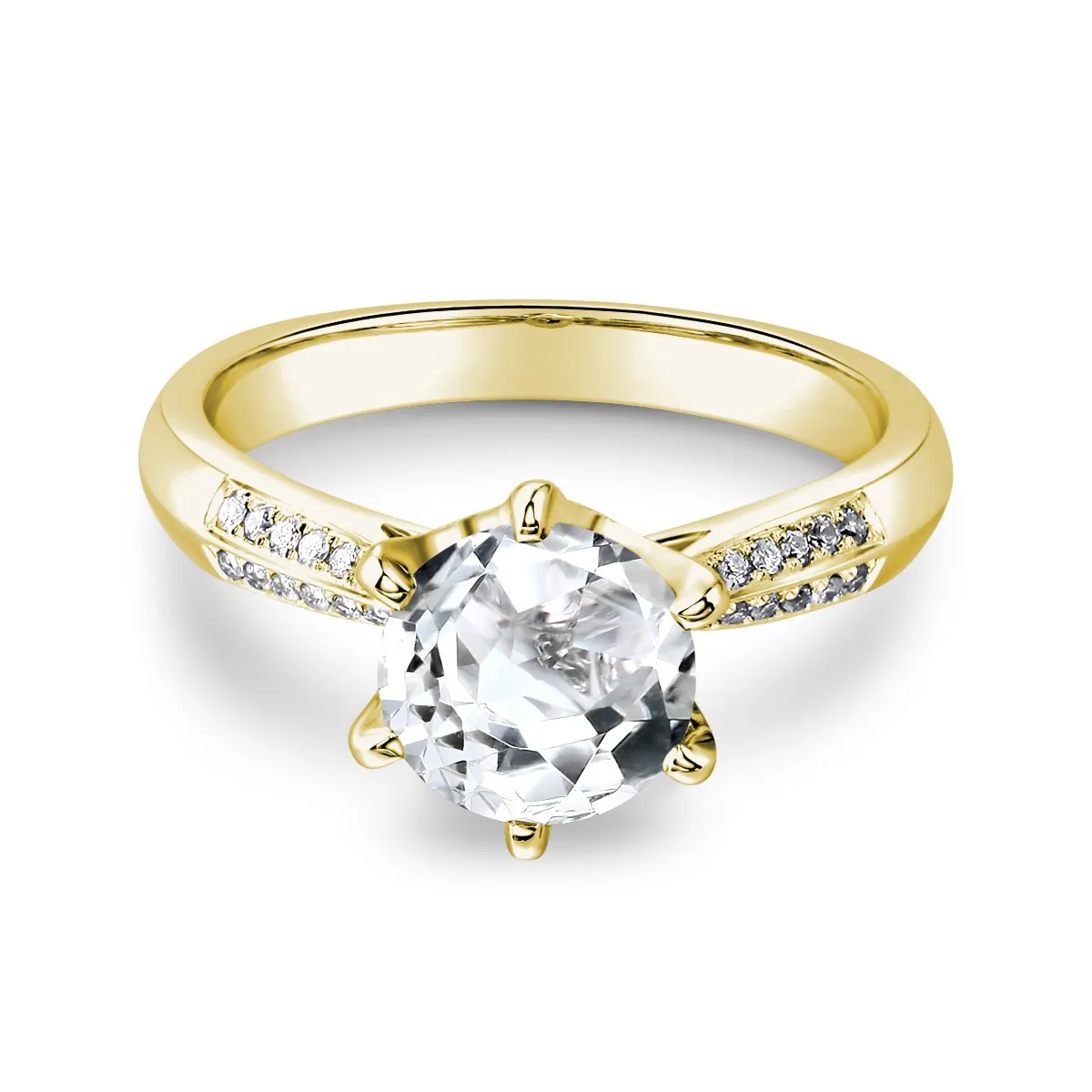 Oro amarillo con Topacio blanco y Diamantes naturales blancos