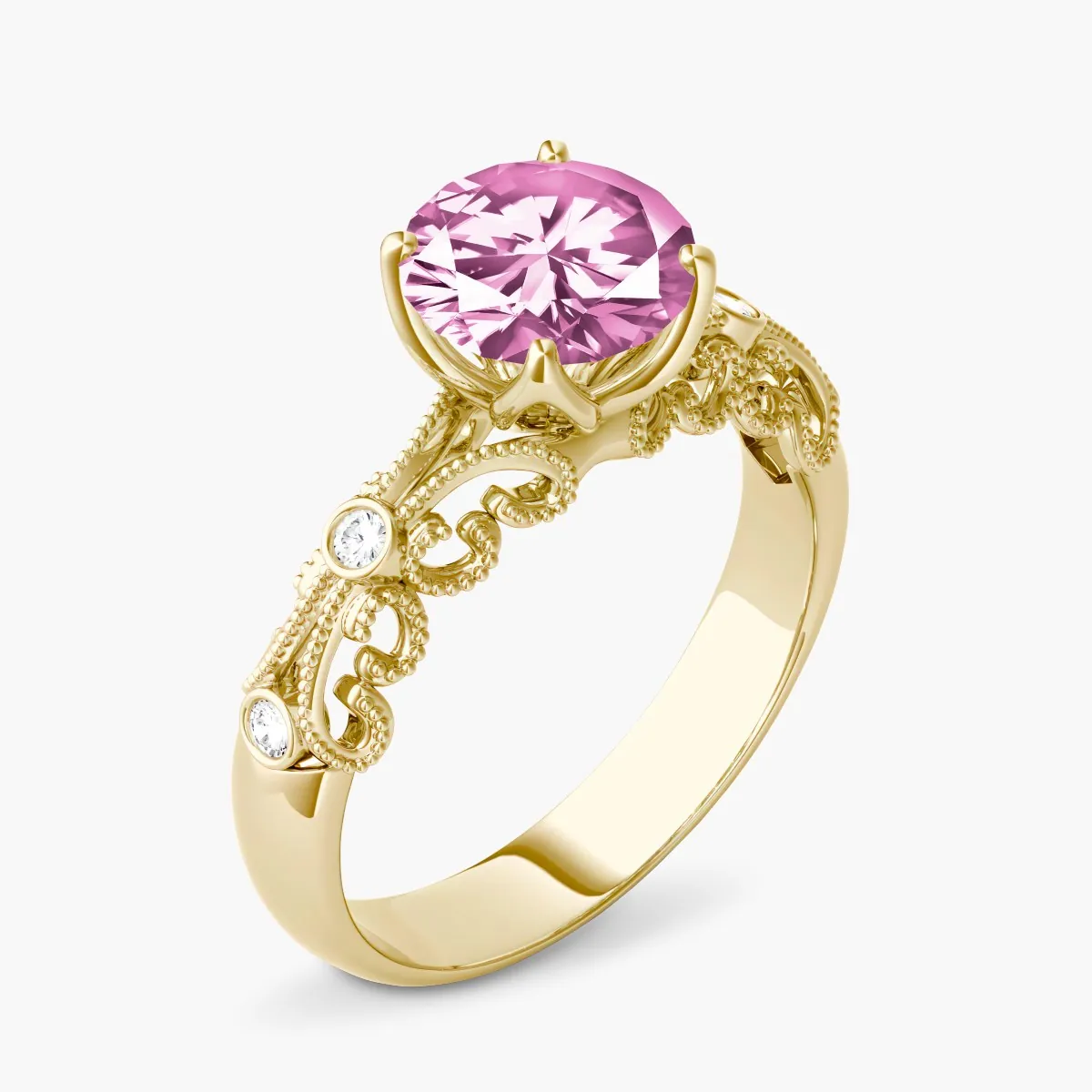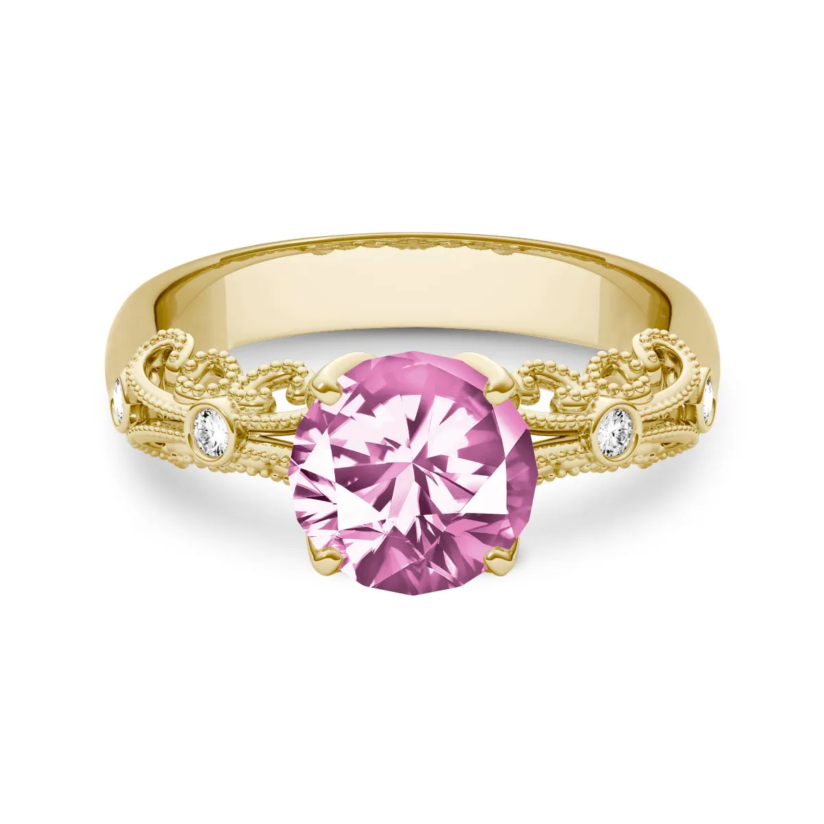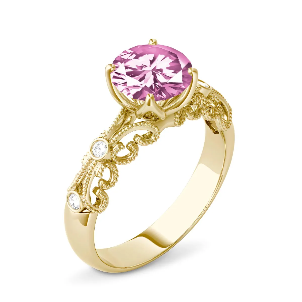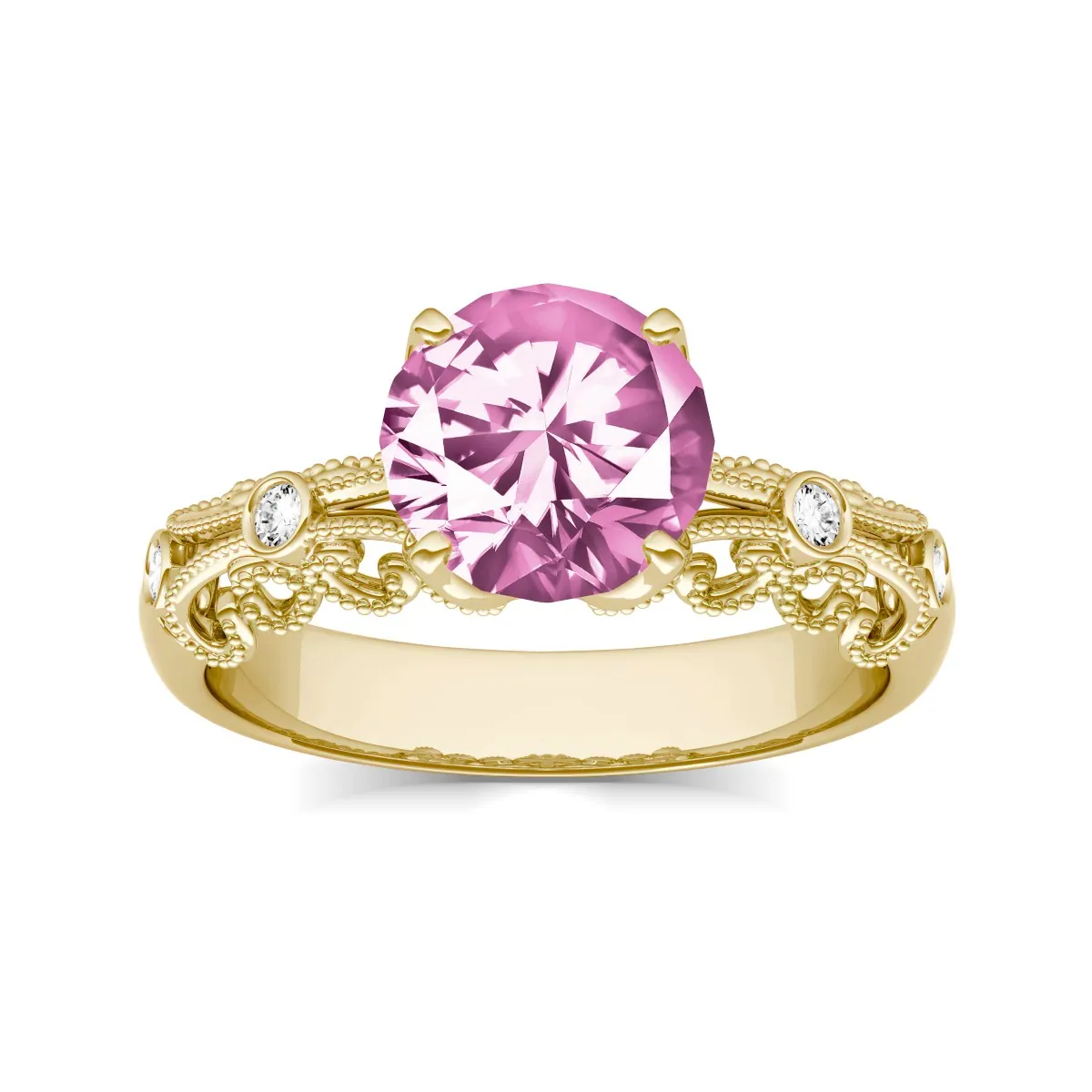 Oro amarillo con Topacio rosa y Diamantes naturales