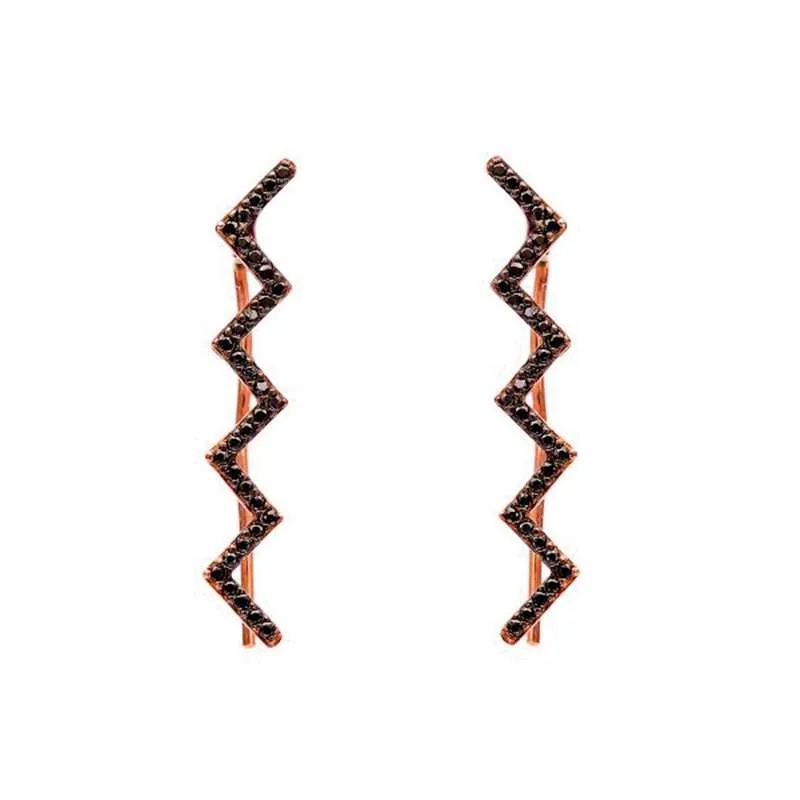 Plata ley 925 con acabdo oro color rosa, lleva detalles de zig zag con incrustaciones de zircon swarovski color negro
