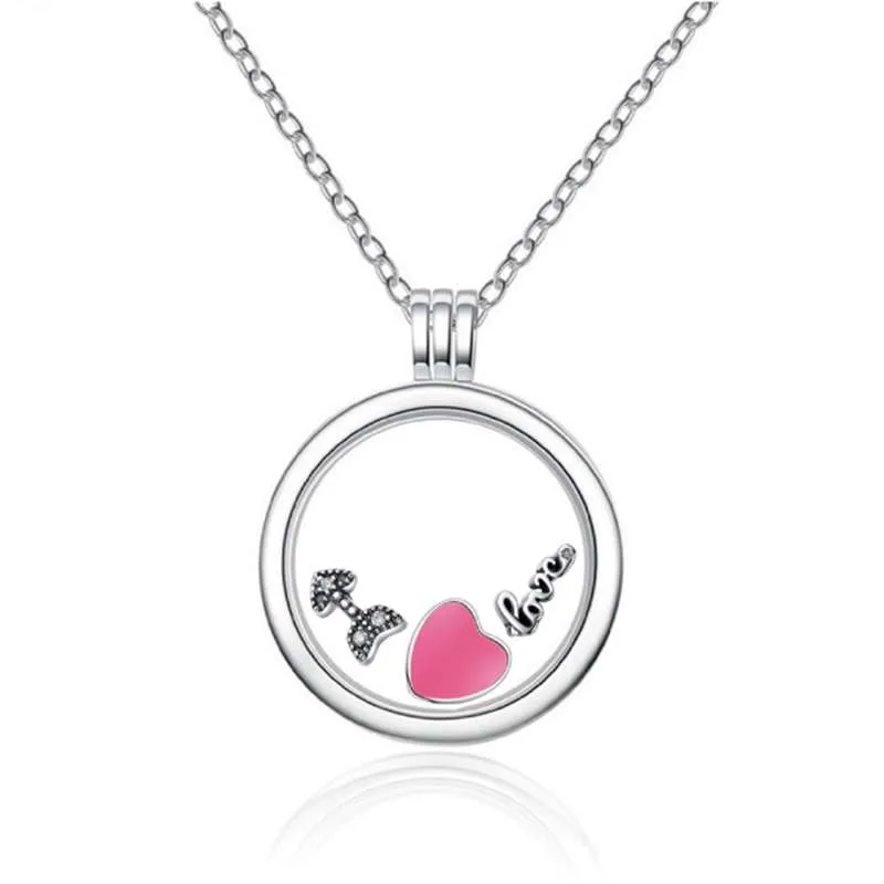 Collar relicario en plata con pequeños dijes la flecha de cupido, corazón de la amistad y la palabra "Love". Todo fabricado en plata ley 925
