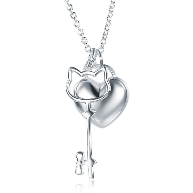 Collar en plata ley 925 lleva dos dijes una formado por un corazón y otra una llave