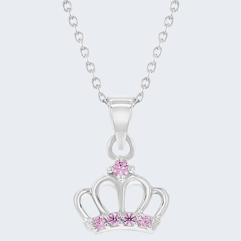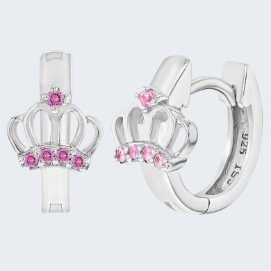 Set para niñas y adolescentes hecho con plata ley 925, en forma de corona de princesa con incrustaciones de zircones swarovski en corte redondo y color rosa
