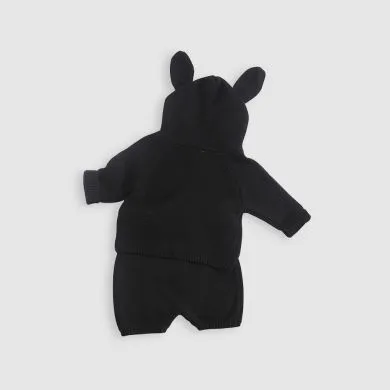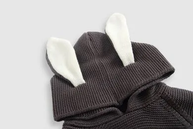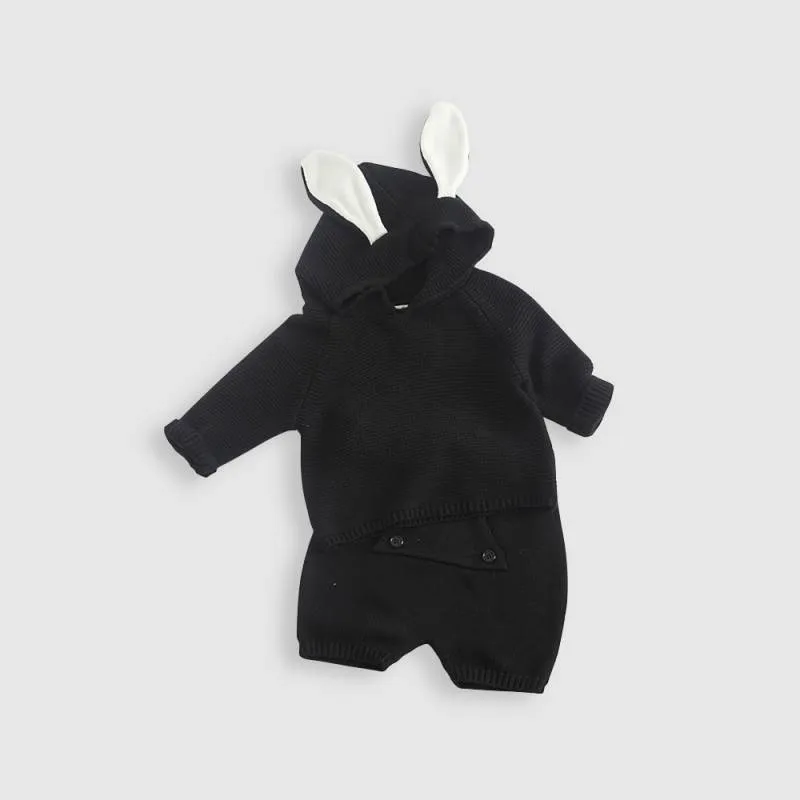 Conjunto de bebé en 2 piezas, fabricado en hilo de algodón, cuello redondo, manga larga y capucha con orejas de conejito