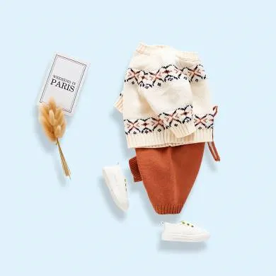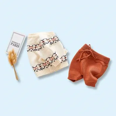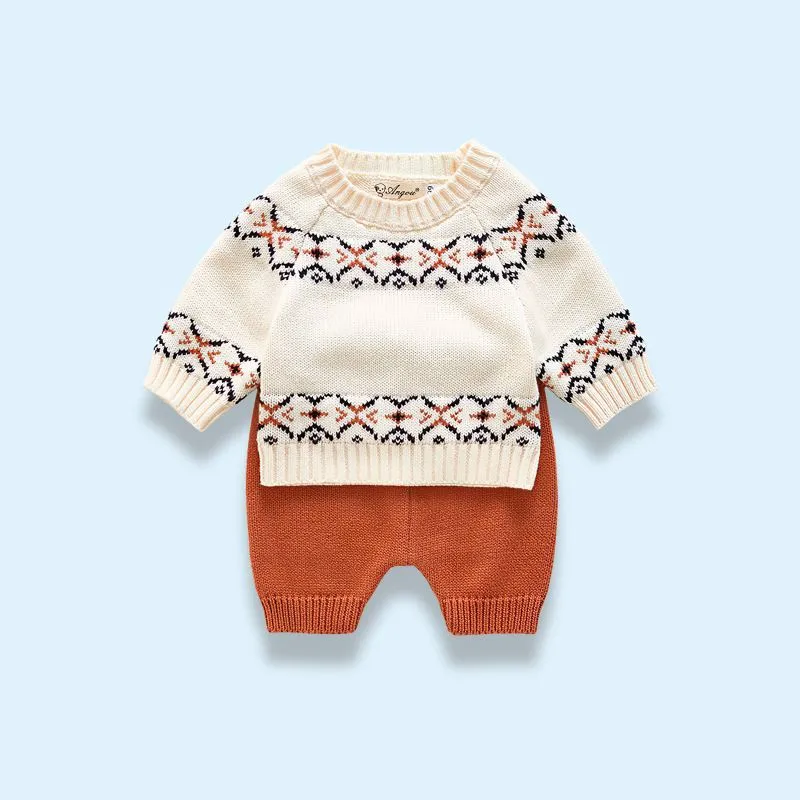 Conjunto de bebé en 2 piezas, fabricado en hilo de algodón, cuello redondo, manga larga.